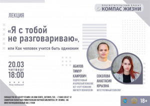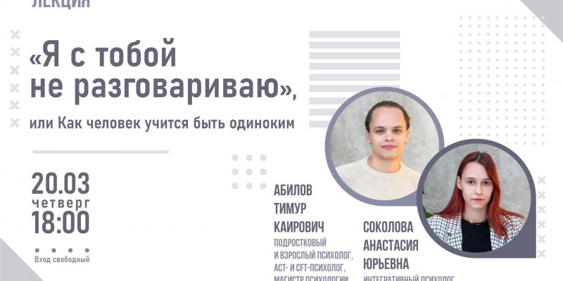 Как психологи описывают феномен одиночества? Почему с точки зрения общества оно чаще всего воспринимается негативно? Есть ли связь между развитием одиночества и распространением интернета? Наконец, имеются ли у одиночества положительные стороны, и о чём оно может нам сигнализировать? Об этом и многом другом расскажут специальные гости библиотеки: подростковый и взрослый психолог, ACT- и СFT-психолог, магистр психологии Тимур Абилов и интегративный психолог Анастасия Соколова.