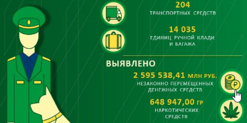 В результате совместной работы кинологов и сотрудников оперативных подразделений таможни из незаконного оборота было изъято более 649 кг наркотических средств и более 9,5 тонн сильнодействующих веществ и прекурсоров.