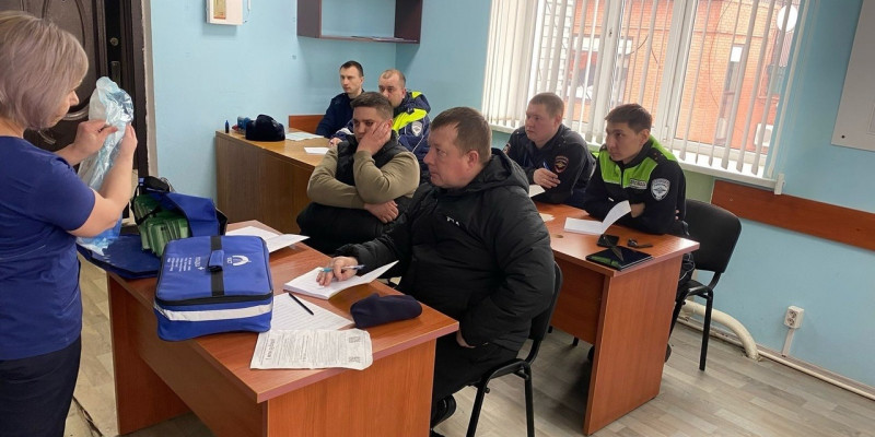 В рамках профессиональной и служебной подготовки личного состава Госавтоинспекции Кинель-Черкасского района медицинскими работниками ЦРБ проведены занятия по обучению инспекторов ДПС оказанию первой помощи пострадавшим в дорожно-транспортных происшествиях.