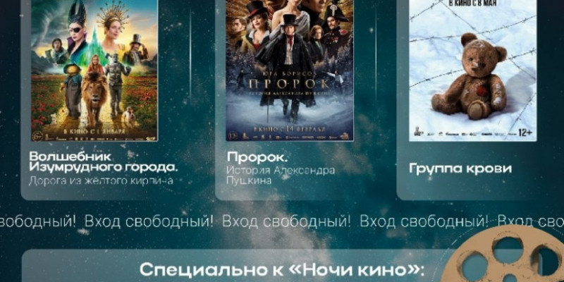 23 августа зрители кинотеатра «Художественный» получат уникальную возможность бесплатно посмотреть самые кассовые отечественные картины 2024-25 годов в рамках Всероссийской акции «НОЧЬ КИНО - 2025», в преддверии Дня Российского кино 27 августа.