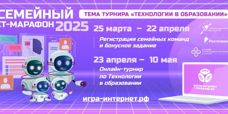 Соревнования пройдут на сайте интерактивного образовательного проекта «Изучи интернет – управляй им» до 10 мая, регистрация семейных команд открыта до 22 апреля.