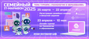 Командам предстоит выполнить 24 интерактивных задания онлайн-турнира по теме «Технологии в образовании». А чтобы получить бонусные баллы и опередить соперников в рейтинге — подготовить и опубликовать в социальных сетях пост об участии в Семейном IT-марафоне.