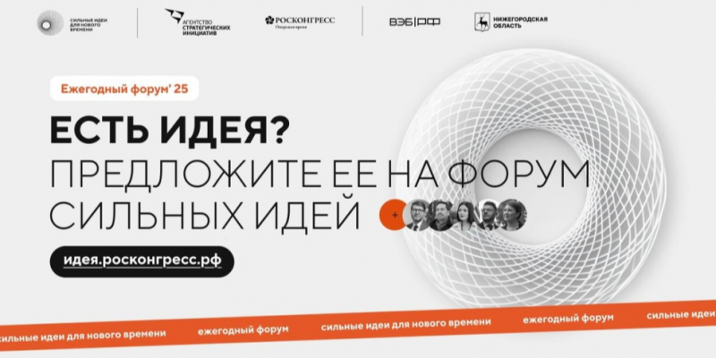 Открыт прием заявок на пятый форум «Сильные идеи для нового времени». Его организаторы – АНО «Агентство стратегических инициатив по продвижению новых проектов» и Фонд «Росконгресс», соорганизаторы – государственная корпорация развития «ВЭБ.РФ» и Правительство Нижегородской области. Свои идеи для позитивных изменений в стране можно подать на платформе идея.росконгресс.рф до 15 мая 2025 года.
