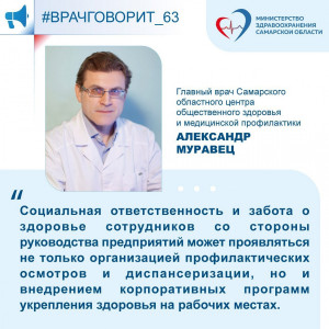 "Социальная ответственность и забота о здоровье сотрудников со стороны руководства предприятий может проявляться не только организацией профилактических осмотров и диспансеризации, но и внедрением корпоративных программ укрепления здоровья на рабочих местах», - отметил Александр Муравец.