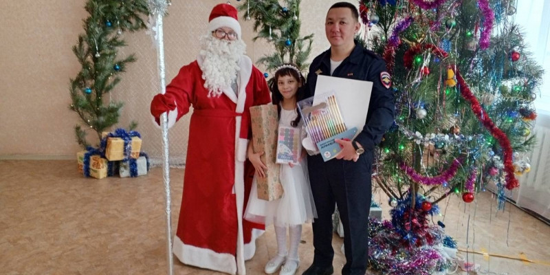 Начальник Межмуниципального отдела МВД России «Клявлинский» подполковник полиции Тимур Кинжалеев пришел в гости и поздравил с Новым годом 9-летнюю девочку Алису из приёмной семьи Клявлинского района.