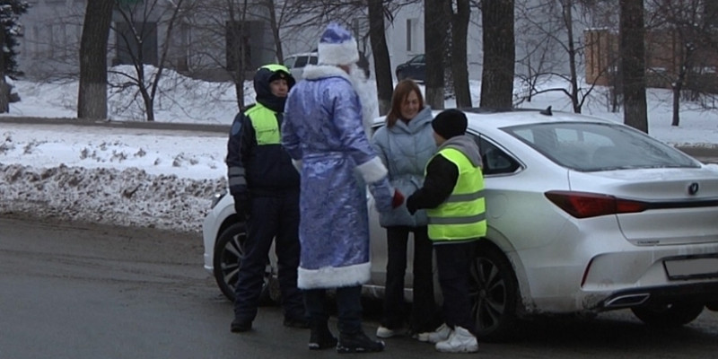 Так, сотрудники Госавтоинспекции совместно с отрядом ЮИД поздравили водителей транспортных средств с наступающими новогодними праздниками и напомнили о необходимости строгого соблюдения Правил дорожного движения в зимний период.