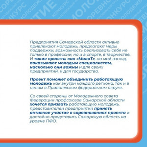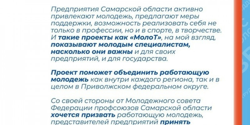 В чем значение проекта ПФО «МолоТ» - комментирует председатель Молодежного совета Федерации профсоюзов Самарской области, заместитель председателя Молодежного совета ТООП Приволжского федерального округа Анастасия Тургенева.
