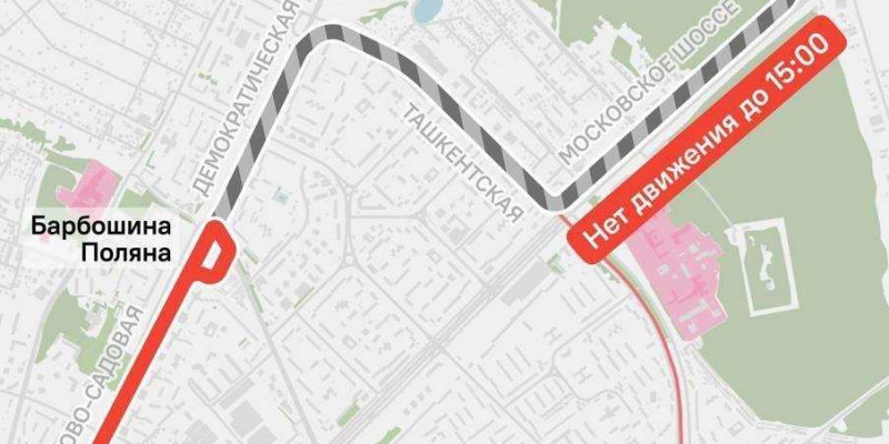 В связи с этим до 15:00 трамваи №7 будут курсировать по укороченному маршруту, от улицы Красных Коммунаров до Барбошиной поляны, не доезжая до стадиона.