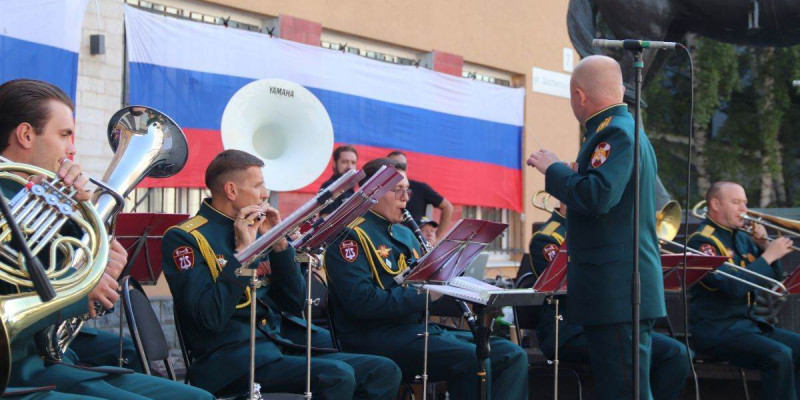 По традиции мероприятие прошло у памятника Александрийским гусарам. Для своего выступления оркестр подготовил разнообразную и насыщенную программу, которая пришлась по вкусу самой широкой аудитории. В исполнении духового оркестра прозвучали как классические военные марши и патриотические композиции, посвященные российскому триколору, так и популярные мелодии из советских и российских кинофильмов.