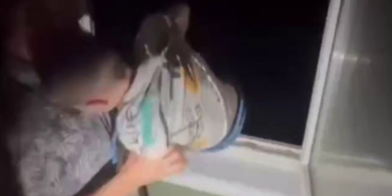 Хозяин квартиры привязал своего несовершеннолетнего сына веревкой и спустил его на тросе с балкона, предположительно с седьмого этажа. Все происходящее он снимал на видео.