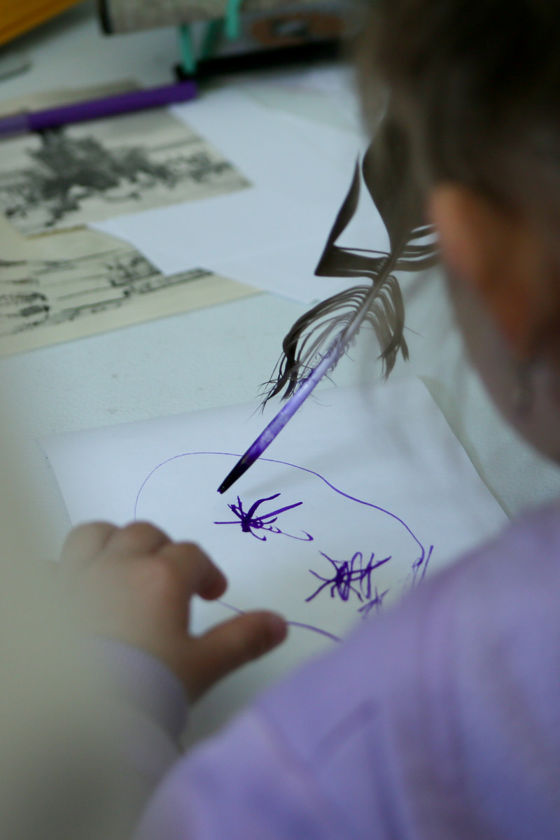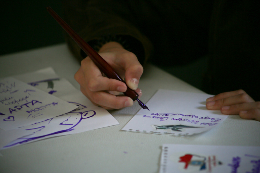 Так, на одной из площадок ребята могли поучиться писать настоящим пером.