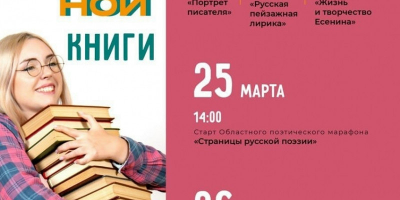 Знаковым событием станет Областной поэтический марафон «Страницы русской поэзии», открытие которого состоится 25 марта в 14:00. Поэтический марафон объединит чтецов‑декламаторов всего региона.