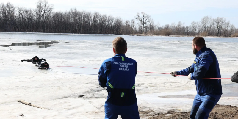 31 марта спасатели Поисково-спасательного отряда города Самары провели тренировочные занятия по спасению людей из воды. Свои действия они отработали в акватории притока Волги — на реке Самаре, где сохранились участки с рыхлым льдом наряду с открытыми участками воды.