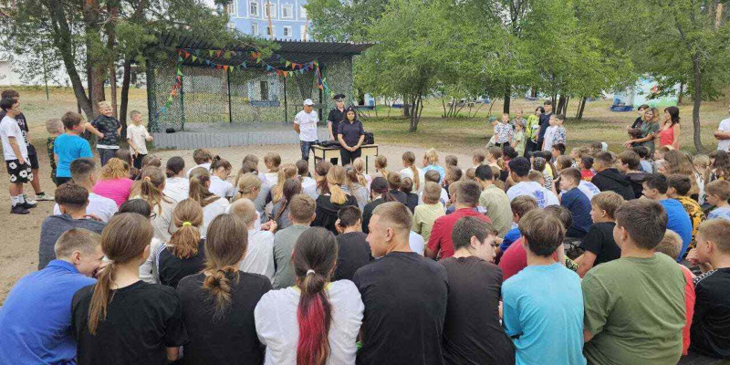 В начале встречи сотрудники полиции совместно с ребятами, отдыхающими в детском оздоровительном лагере «Гранит», сделали утреннюю зарядку. Подростки старались продемонстрировать, что они знают и легко выполняют простые движения.