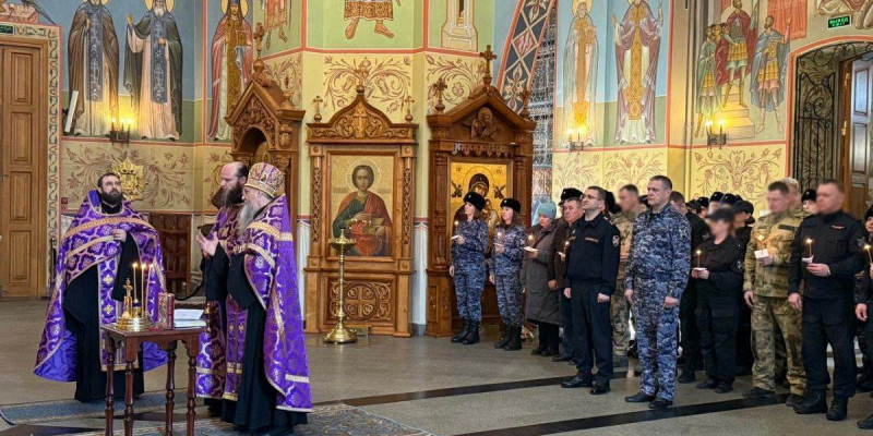 Молебен провел настоятель прихода храма в честь иконы Пресвятой Богородицы «Взыскание Погибших» иерей Михаил Жегалин. По завершении богослужения с благословления Святейшего Патриарха Московского и всея Руси Кирилла он вручил полковнику полиции Сергею Абрамову походный стяг Владимирской иконы Божией Матери. Эта святыня будет сопровождать сотрудников и военнослужащих войск правопорядка в служебных командировках.