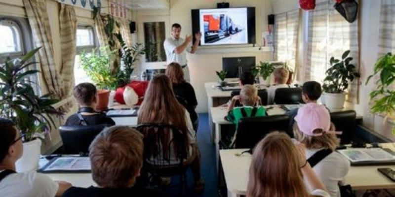 В необычном классе на колёсах побывали воспитанники летней коррекционной группы Октябрьского подразделения комплексного Центра социального обслуживания населения Самарского округа и учащиеся средней школы № 134.