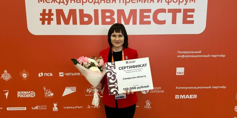 Самарское региональное отделение ВОД «Волонтёры культуры» стало призером в номинации «Культурное добровольчество». На форуме «Мы вместе» сертификат для Добро.Центра «Волонтёры культуры. Регион 63» вручен Дарье Замыцкой — сотруднику Самарской областной библиотеки для молодёжи и лидеру волонтеров культуры региона.