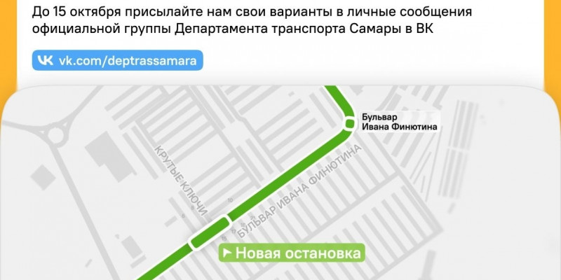 Департамент транспорта предлагает самарцам выбрать название для автобусной остановки на бульваре Ивана Финютина (у домов №6 и №17).