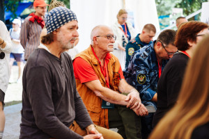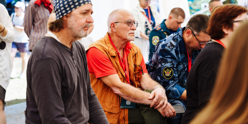 Михаил Калинкин, руководитель площадки «ZА НАШУ ПОБЕДУ. 80 ЛЕТ» пригласил гостей фестиваля на патриотическую сцену. «Мы сохранили свою душу благодаря тому, что у нас есть такая вещь, как бардовский фестиваль», - заявил Калинкин.