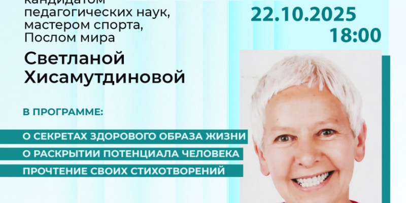 22 октября в 18:00 Самарская областная универсальная научная библиотека приглашает жителей города на «Разговор о главном. В стихах» с поэтессой Светланой Хисамутдиновой.