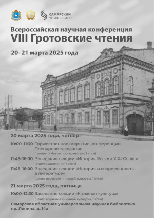 20 и 21 марта в Самарской областной универсальной научной библиотеке состоится одно из самых важных событий академической жизни губернии этой весны – Всероссийская научная конференция «VIII Гротовские чтения». В мероприятии примут участие ведущие российские историки, филологи, краеведы, культурологи и другие специалисты, которые вместе обсудят вопросы книговедения, литературы и отечественной истории.