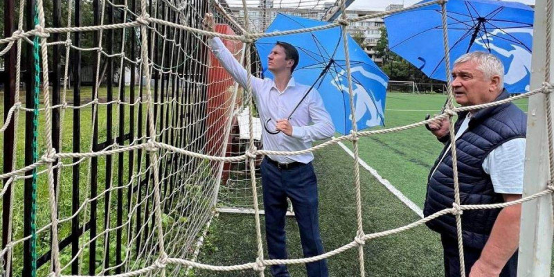 В Промышленном районе Самары запланированной проверке не помешала даже дождливая погода. Депутат Самарской губернской думы, секретарь местного отделения партии «Единая Россия» Виктор Воропаев вместе с председателем совета депутатов Ильей Шевцовым не выявили проблем и нарушений в эксплуатации футбольных полей по улице Зои Космодемьянской. А вот на улице Тополей, 4, отсутствуют сетки на футбольных воротах и есть повреждение искусственного покрытия.