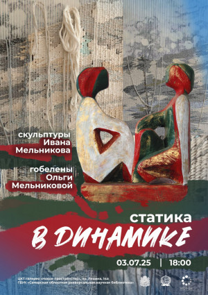На выставке «Статика в динамике» самарцы смогут увидеть скульптуры Ивана Мельникова и работы Ольги Мельниковой, выполненные в технике ручного ткачества. Открытие экспозиции пройдёт при участии самих мастеров, которые поделятся с гостями галереи рассказом о своём творчестве.
