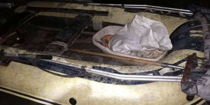Сотрудниками транспортной полиции с места происшествия изъяты острога, рыбы породы щука и налобный фонарь, принадлежащие нарушителю, а также оставлена на ответственное хранение резиновая лодка.