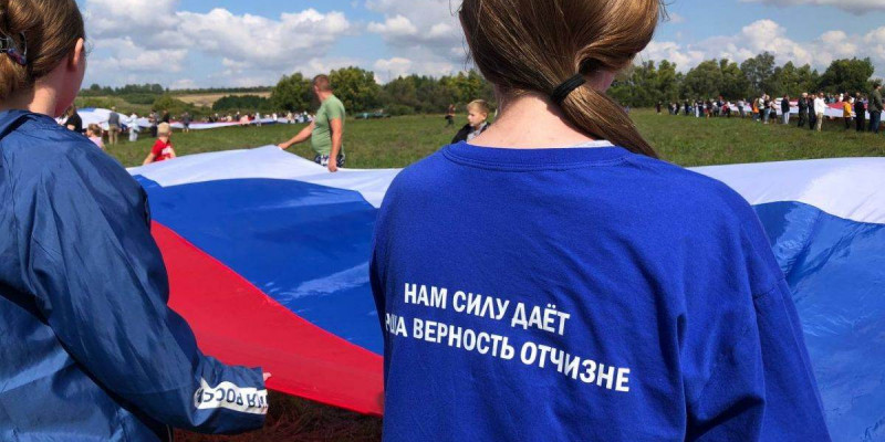 Накануне Дня Российского флага активисты «Молодой Гвардии», депутаты и волонтёры «Единой России», представители патриотических и молодёжных объединений развернули гигантские ленты в цветах российского триколора.