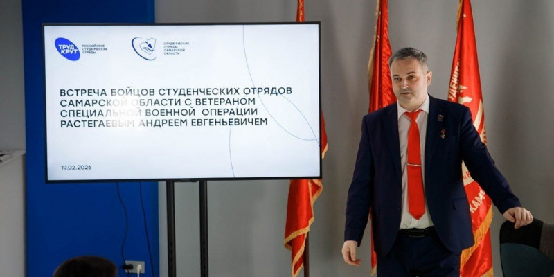 Перед бойцами студенческих отрядов выступил ветеран специальной военной операции, кавалер ордена Мужества, участник «Школы героев» (программа реализуется по инициативе губернатора Самарской области Вячеслава Федорищева в продолжение президентской «Время героев»), член Ассоциации ветеранов СВО Андрей Растегаев. Также в прошлом году он стал победителем всероссийского конкурса наставников «Быть, а не казаться», организованного Росмолодежью и Роспатриотцентром.