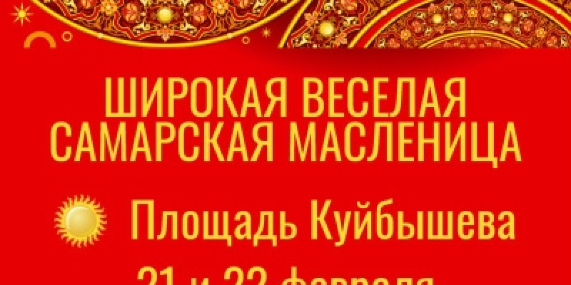 В субботу и воскресенье гостей ждет выставка «Город мастеров», в которой примут участие в общей сложности не менее 200 мастеров глиняной и соломенной игрушек, резьбы по дереву, плетения, вышивки, керамики, авторских сувениров и других ремесел. В обновленной Усадьбе Деда Мороза разместится выставка работ конкурса «Самарская Маслена». Также гостей ждут праздничные фотозоны – «Дымковские игрушки», «Самовар и чашки», «Богатырские сапоги», «Сковорода», «Ложки-качели», «Мельница» и другие. Центральным арт-объектом станет «Маслена» высотой 9 метров – она уже установлена на площади. Также будет развернута сувенирная торговля, будут работать ледовые катки и деревянная горка.