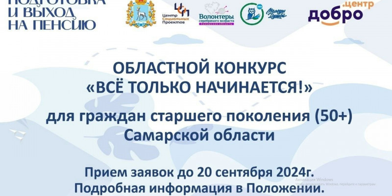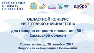 Областной конкурс «Все только начинается!» направлен на популяризацию и развитие активного долголетия, позитивной занятости, здорового образа жизни граждан старшего поколения Самарской области.