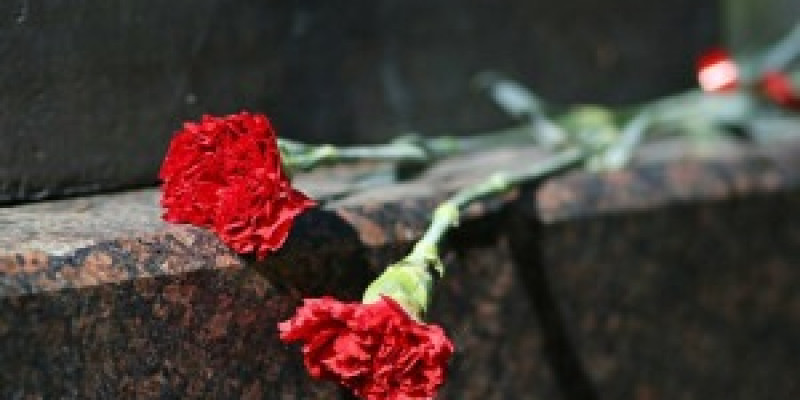 В зале для церемоний собрались близкие и друзья артиста. Постамент с гробом выложили красными цветами.