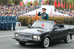 С праздником Великой Победы поздравил принимающий парад исполняющий обязанности Командующего Второй гвардейской общевойсковой армии по военно-политической работе гвардии полковник Александр Липатов.
