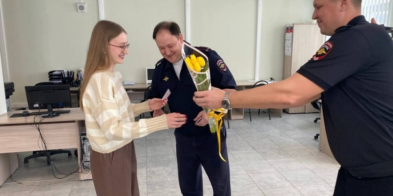 В преддверии Международного женского дня сотрудники полиции в регистрационно-экзаменационном отделении Госавтоинспекции поздравили представительниц прекрасного пола с весенним праздником.