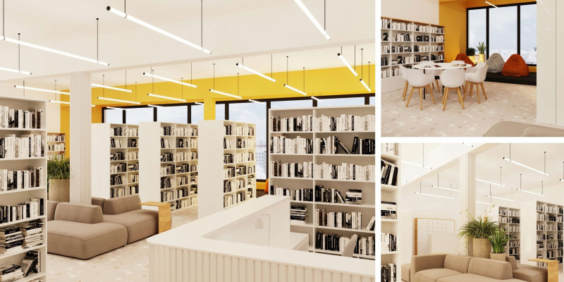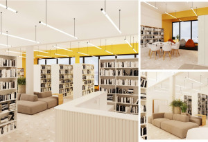 Здесь будет предусмотрено многофункциональное пространство, способное трансформироваться в несколько различных локаций: для проведения мероприятий, работы с электронными ресурсами, показа мини-спектаклей;
