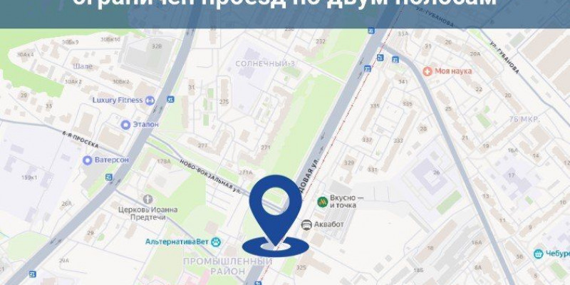 Ограничение движения будет введено в районе дома №325 по двум полосам автомобильной дороги по направлению «из города» (ориентир – пересечение с улицей Ново-Вокзальной).