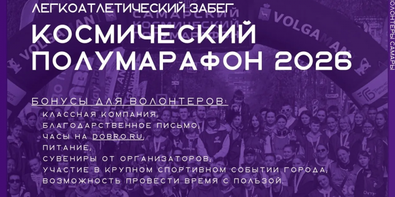 В Самаре стартует набор волонтеров для участия в проведении XI Космического полумарафона, который будет приурочен ко Дню космонавтики и состоится в областной столице 19 апреля. (14+)