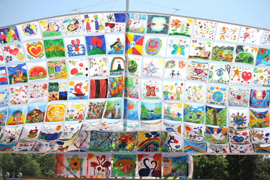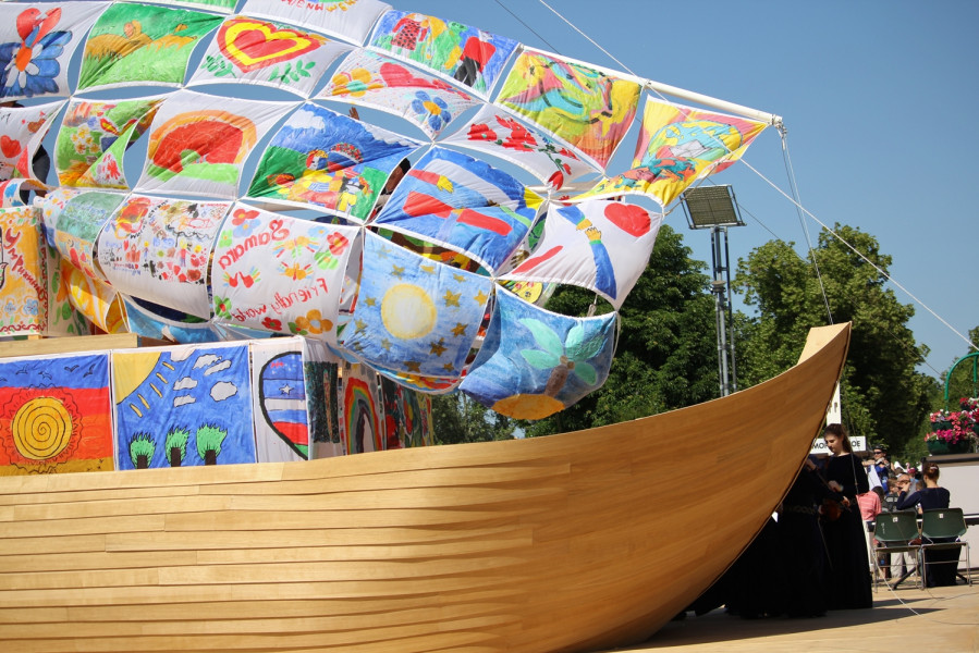 Паруса 18-метрового корабля расписывали несколько недель, в процессе поучаствовали более 600 самарских детей.