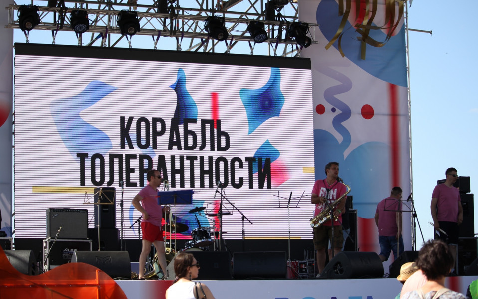 Одной из центральных площадок "ВолгаФест" стал "Корабль толерантности", который на набережной видно издалека.