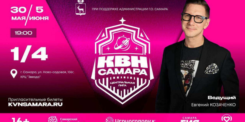 30 мая и 5 июня в 19:00 в Самаре состоится 1/4 Центральной лиги КВН. Мероприятие проводится при поддержке администрации города. 16+