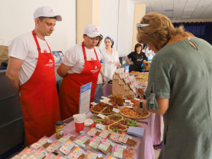 В фойе комплекса была организована выставка товаров со знаком «Самарский продукт», демонстрируя разнообразие и качество продукции местных производителей.
