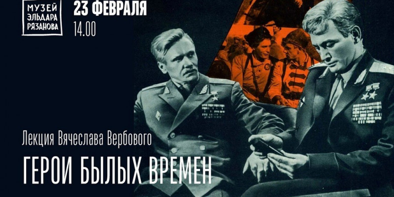3 февраля (понедельник) в 14.00 в Музее Эльдара Рязанова пройдет лекция «Герои былых времен» (12+). Ее прочитает кандидат исторических наук, старший научный сотрудник музея Вячеслав Вербовой. Мероприятие приурочено ко Дню защитника Отечества.