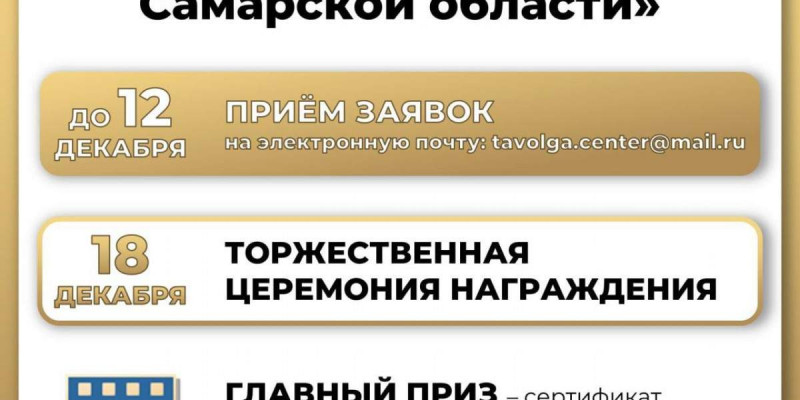 Заявки на участие в конкурсе принимаются на электронную почту tavolga.center@mail.ru или по номеру телефона +7 (846) 953-76-71. Подробная информация на сайте Министерства труда Самарской области clck.ru/3QfKx3.