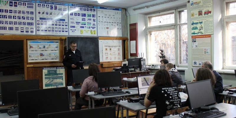 Полицейские обсудили с курсантами автошколы основные причины нарушения Правил дорожного движения и рассказали им о преимуществах использования портала Госуслуг.