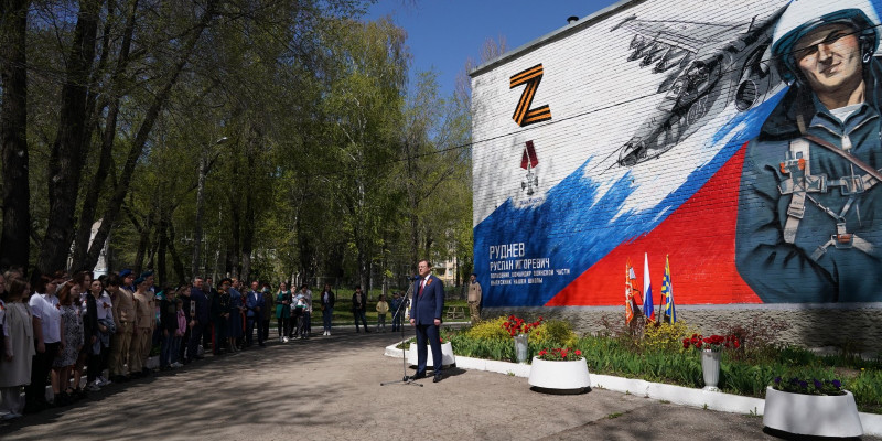 Накануне 77-й годовщины Великой Победы, 8 мая, Губернатор Дмитрий Азаров принял участие в торжественной линейке самарской школы №72, посвященной открытию на фасаде здания мурала в честь полковника, командира воинской части Руслана Руднева, погибшего во время проведения специальной военной операции на Украине.