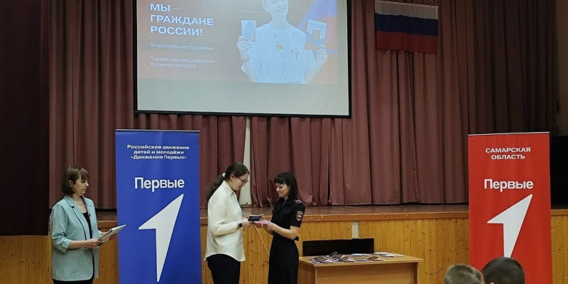 В торжественной обстановке — с целью патриотического воспитания и повышения уровня правовой культуры подрастающего поколения — самым активным и целеустремлённым ребятам, достигшим возраста 14 лет, паспорта гражданина России вручила начальник отделения по вопросам миграции МО МВД России «Клявлинский» майор полиции Айгуль Тамашова.