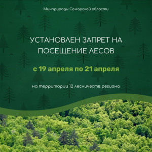В связи с высоким риском возникновения лесных пожаров, сохранением в предстоящие дни преимущественно сухой ветреной погоды, а также в целях недопущения природных пожаров и чрезвычайных ситуаций в Самарской области введен запрет на посещение лесного фонда с 19 апреля по 21 апреля. Он действует на территории 12 лесничеств региона:
