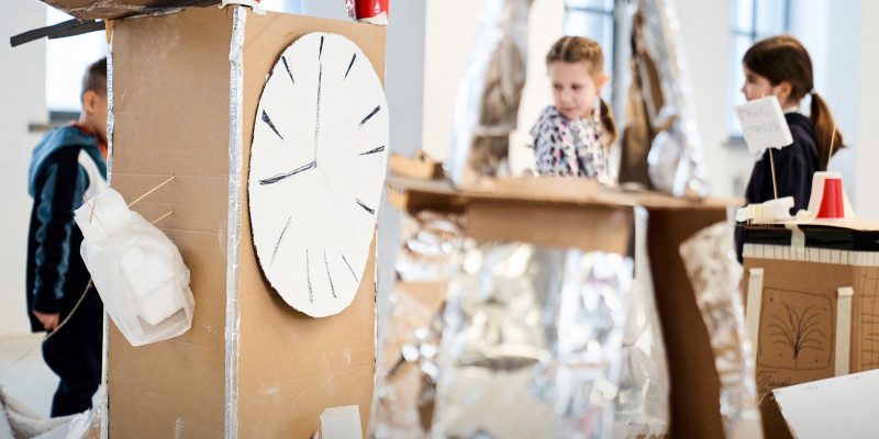 Гости творческих мастер-классов создавали из фольги, картона и пенопласта город будущего, в нем есть завод пельменей, телебашня, колесо обозрения, кафе и даже приют для животных.