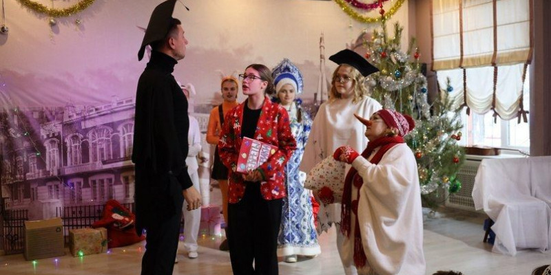 На старте мероприятия участники водили хороводы, отгадывали зимние загадки и радовались встрече и общению. Затем для гостей Дворца ветеранов показали увлекательный спектакль «Приключения на новогодней фабрике подарков», который подготовили преподаватели и воспитанники Театрального коллектива «ВиР» МБУ ЦДТ «Восход» под руководством Веры Васильевой.